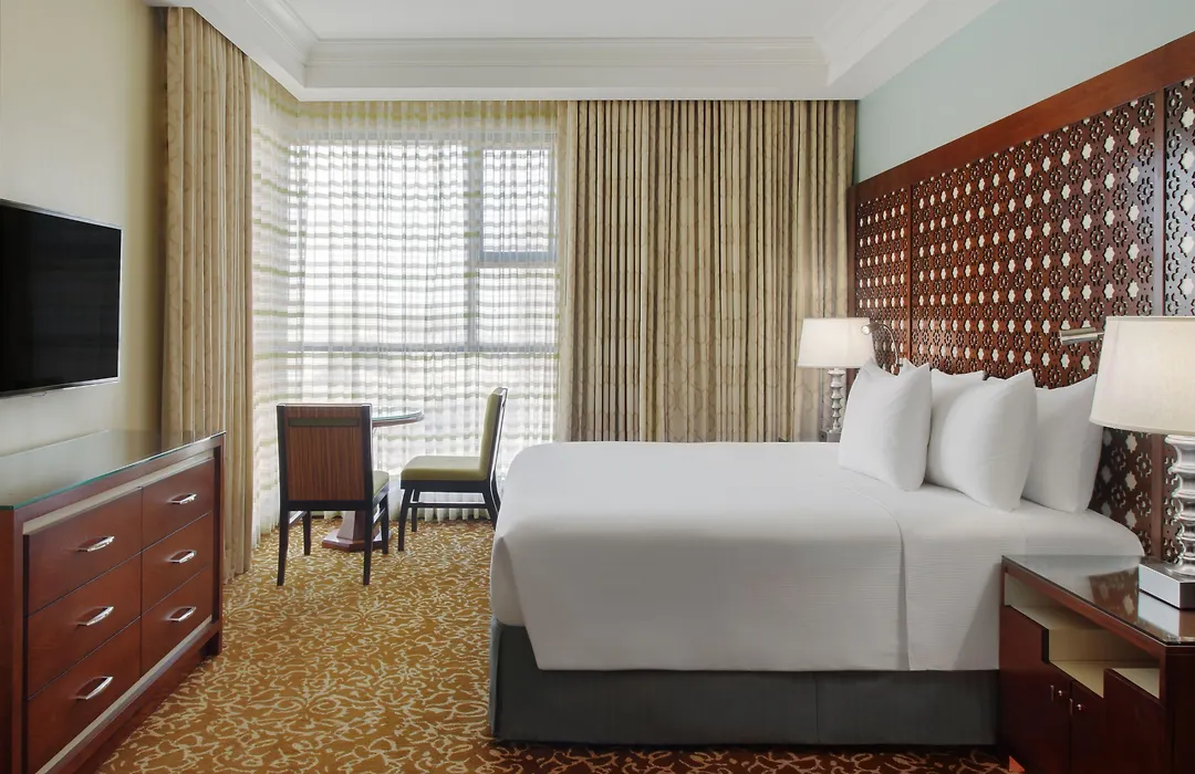 Hilton Suites Makkah 484 oda ile hizmet vermektedir. Kişisel kasa, uydu kanallı düz ekran televizyon, elektronik kart anahtar odalarda mevcuttur. Tüm yatak odalarında dolgun yastıklar, kuş tüyü yastıklar bulunmaktadır.