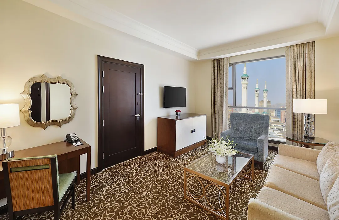 Mekke şehrinde Taneem Mescidi'a 4 km mesafede yer alan Hilton Suites Makkah, özel bir kasa, 24-saat güvenlik sunmaktadır. Hilton Suites Makkah Mekke, Library of Al-Masjid Al-Haram'nın yakınında yer alır.